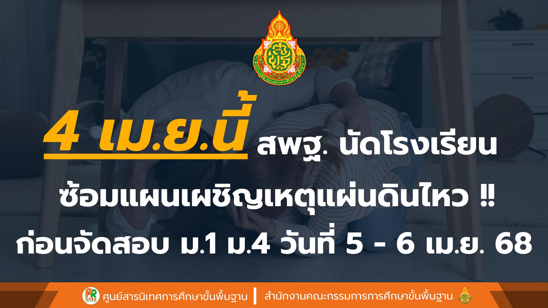 ข่าวสารการศึกษา ด่วนที่สุด!!! 4 เม.ย.นี้ สพฐ.กำหนดนโยบายให้โรงเรียนซักซ้อมแผนเผชิญเหตุกรณีเกิดแผ่นดินไหว admin เม.ย. 3, 2025