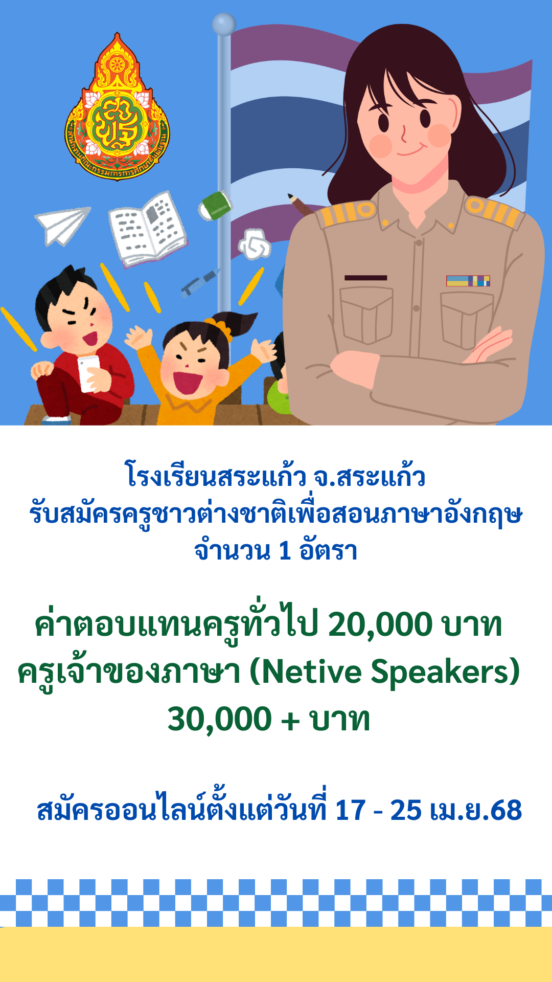 หางานราชการ โรงเรียนสระแก้ว จ.สระแก้ว รับสมัครครูชาวต่างชาติเพื่อสอนวิชาภาษาอังกฤษ admin เม.ย. 17, 2025